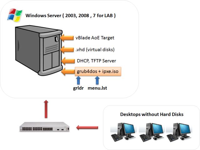- Download and install WinPCAP and vBlade Target System ( AoE ) and export the target of .vhd: