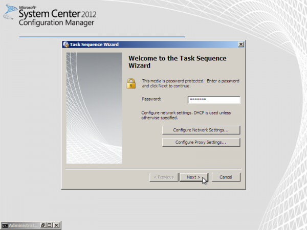 A few seconds later, you should see the usual SCCM “Welcome to the Task Sequence Wizard” screen: